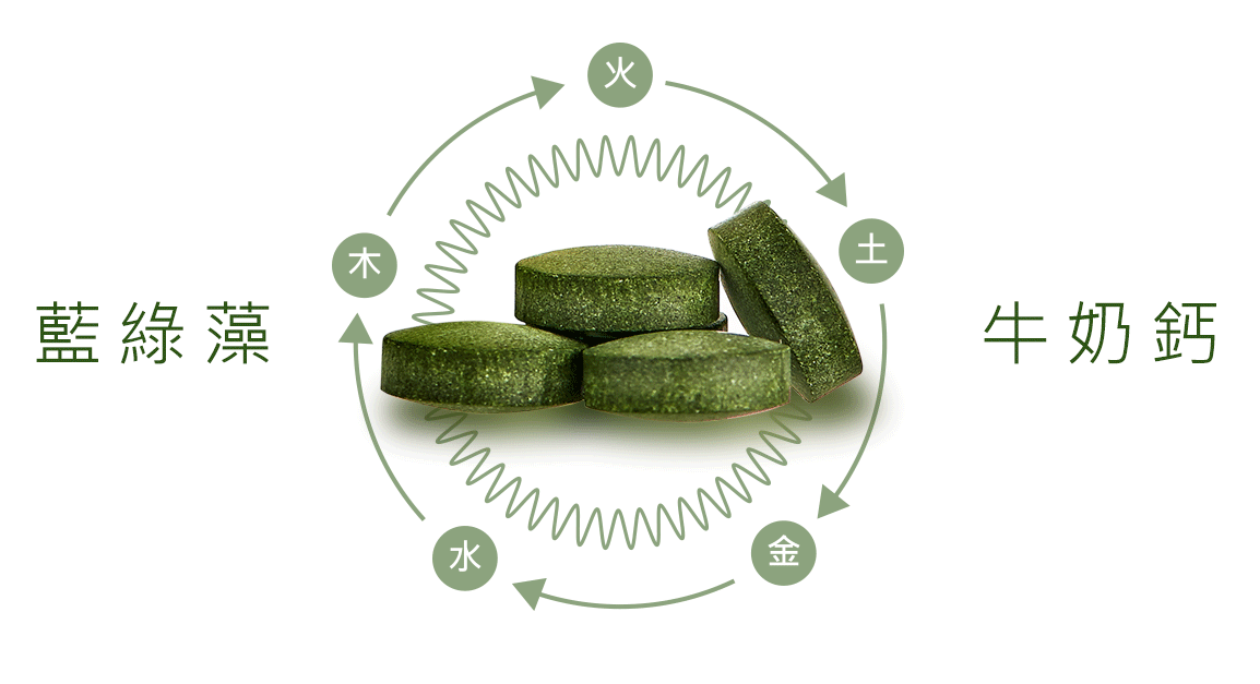 藍綠藻,它獨特的螺旋狀結構也讓它獲得螺旋藻的稱號。藍綠藻可以說是天然的綜合維生素與蛋白質的綜合體,是非常好的天然營養補充品,加上我們每天必須攝取足夠的鈣營養成份,所以我們研究出「鈣藻片」,藍綠藻為鹼性食物,其多孔洞結構被認為有吸附人體毒素排除體外的功效,世紀綠色優質食物來自大自然的恩典,要為現代人的健康生活加分。